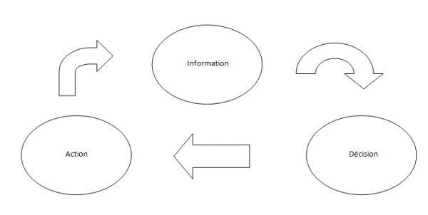 L’entreprise reçoit et traites les informations pertinentes internes (notre CA augmente de 5% au 2ème trimestre) et externes (les taux d’intérêts ont diminué de 0.5 point). Chacune de ces informations va entraîner qui va entraîner une action.