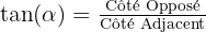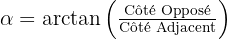 - Arctan (tan-1) : A utiliser si l'on connaît le côté opposé et le côté adjacent :