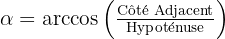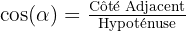 - Arccos (cos-1) : S'utilise si l'on connaît le côté adjacent et l'hypoténuse :