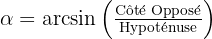 - Arcsin (sin-1) : A utiliser si l'on connaît le côté opposé et l'hypoténuse :