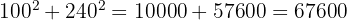 Puisque [67 600 = 67 600, l'égalité est vérifiée. Le triangle est bien rectangle, le mur est donc parfaitement droit.