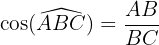 Mathématiquement, cela est exprimé par la formule cos(A)=c/b