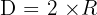 - Le diamètre (D) : Segment reliant deux points du cercle en passant obligatoirement par le centre. Sa longueur est égale à deux fois celle du rayon :