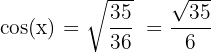 b. Soit un triangle ABC rectangle en A et α l'angle ABC. On sait que la valeur sin(x) est égale à 1/6. Déterminer la valeur de cos(x) et de tan(x).