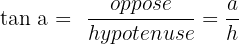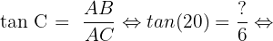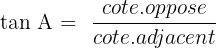Les cotés qui nous intéressent ici sont les côtés CA et AB à savoir le coté adjacent et le côté opposé. On doit donc utiliser la tangente :