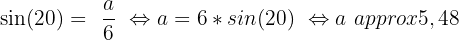 Exercice 4 : En reprenant la figure de l'exercice 1, déterminer la valeur de a et b en sachant que l'angle alpha est égal à 20 degrés et que l'hypoténuse h est égale à 6.
