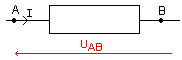 | avec |  | UAB: Tension électrique existant entre les points A et B en volts (V). VA: potentiel électrique au point A en volts (V). VB: potentiel électrique au point B en volts (V). |
