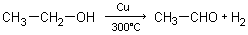 Par passage de l'éthanol gazeux sur du cuivre (catalyseur) à 300°C, on observe une déshydrogénation (élimination d'une molécule de dihydrogène) de l'éthanol en éthanal.