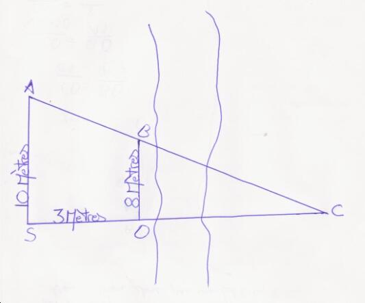 Un personnage se situe au niveau d'une rivière, en regardant de l'autre côté de la rive, il aperçoit un arbre. Il souhaiterait connaître sa distance par rapport à cette arbre. Cependant, cet individu ne dispose que de petits cailloux et de son cerveau. Il sait également, que son pas est environ égale à 1 mètre.