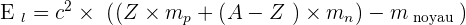 La masse du noyau est inférieure à la somme des masses des nucléons qui constituent ce noyau. Cette énergie de liaison, notée El, assure la cohésion des constituants du noyaux ( = nucléons ). C'est l'énergie qu'il faut fournir à n noyaux pour le dissocier de ses nucléons.