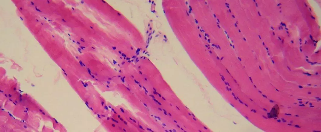 Les principaux éléments visibles sous le microscope optique sont les myofibrilles. Ceux-ci courent longitudinalement dans toute la fibre et constituent la machinerie contractile du muscle. Chaque myofibrille est traversée par des stries.