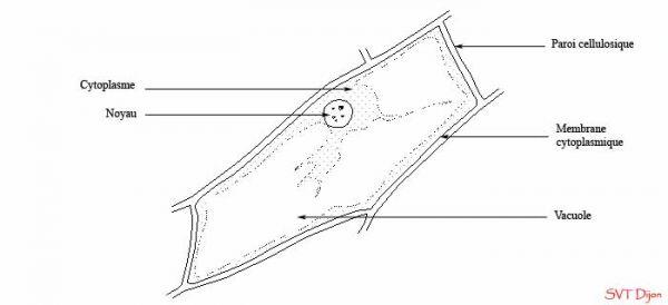 Schéma d'une cellule végétale : cellule de l'épiderme de l'oignon rouge