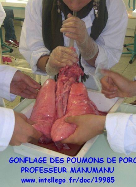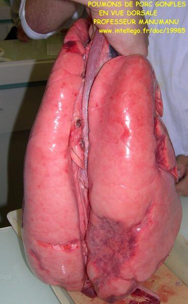 Quant à la physiologie, on peut gonfler par la trachée artère les deux poumons, à conditions qu'ils n'aient pas été entaillés à l'abattoir bien sûr.