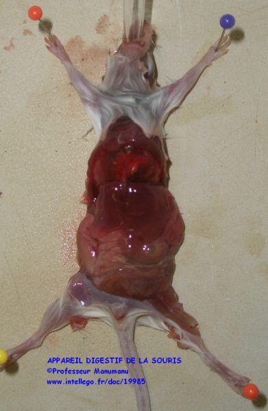 La tentative de gonflage des poumons aboutit le plus souvent au gonflage du tube digestif....mais cela le met bien évidence et facilite le déroulement ultérieur....