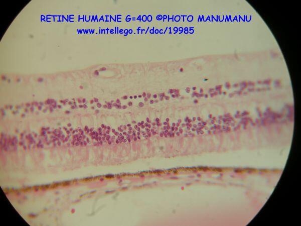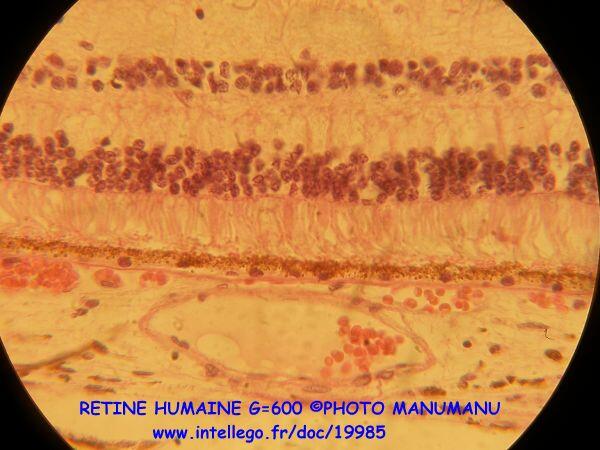 La rétine humaine est ce fin tissu qui tapisse le fond de l'oeil. Constitué de trois couches de neurones, il réceptionne les ondes lumineuses et les traduit en message nerveux.