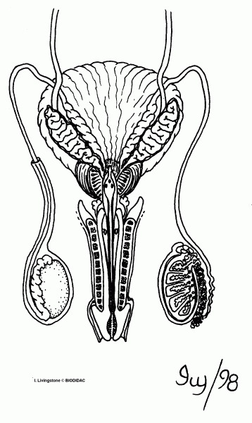 Ce schéma montre l'organisation de l'appareil génital masculin de face.